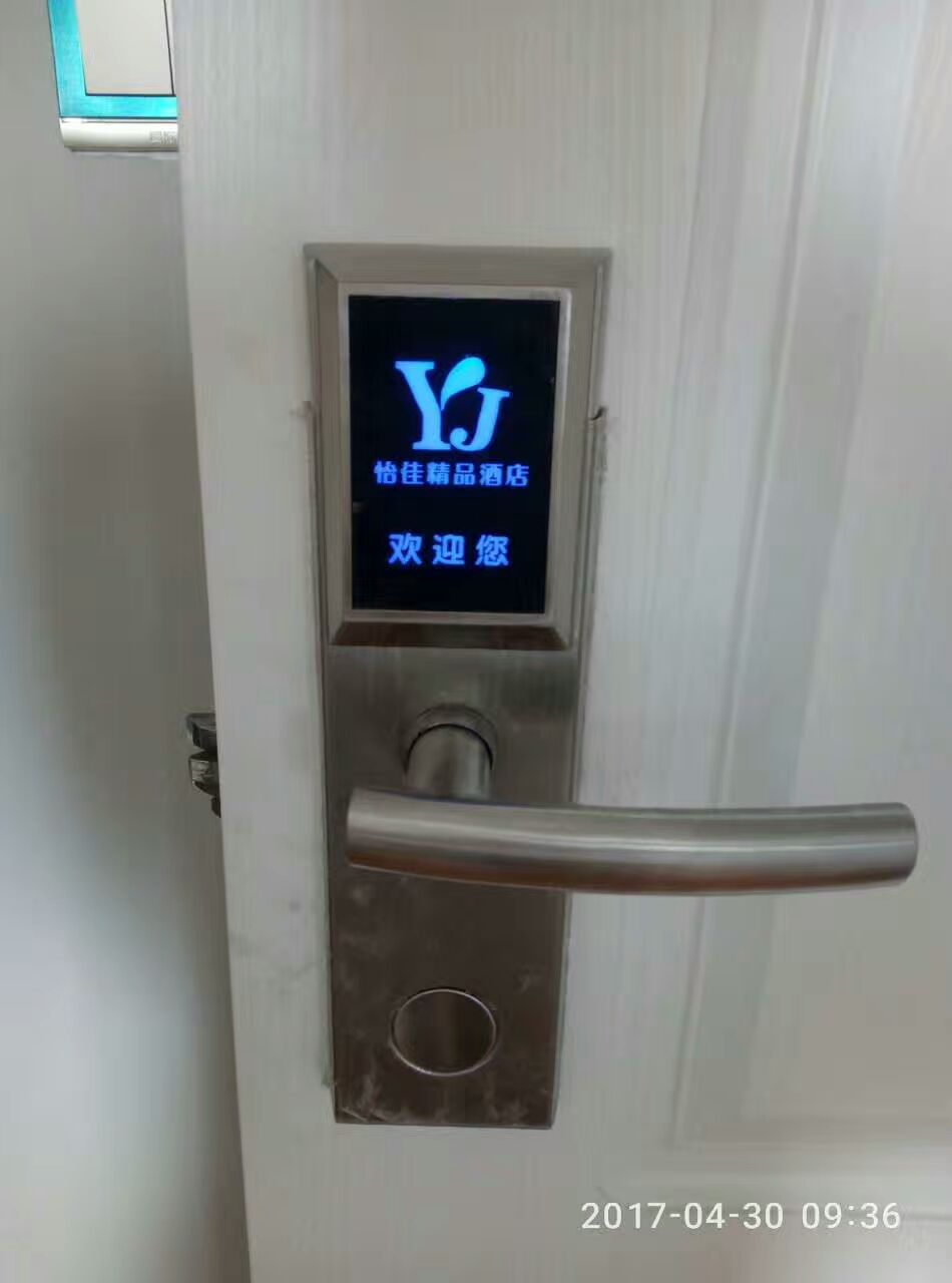 連州市怡佳精品酒店。采用固麗佳815FS精品酒店鎖,這款酒店鎖感應(yīng)區(qū)顯示面板可以個(gè)性化定制設(shè)計(jì)酒店名稱,房號(hào),酒店品牌形象LOGO,彰顯酒店特色!