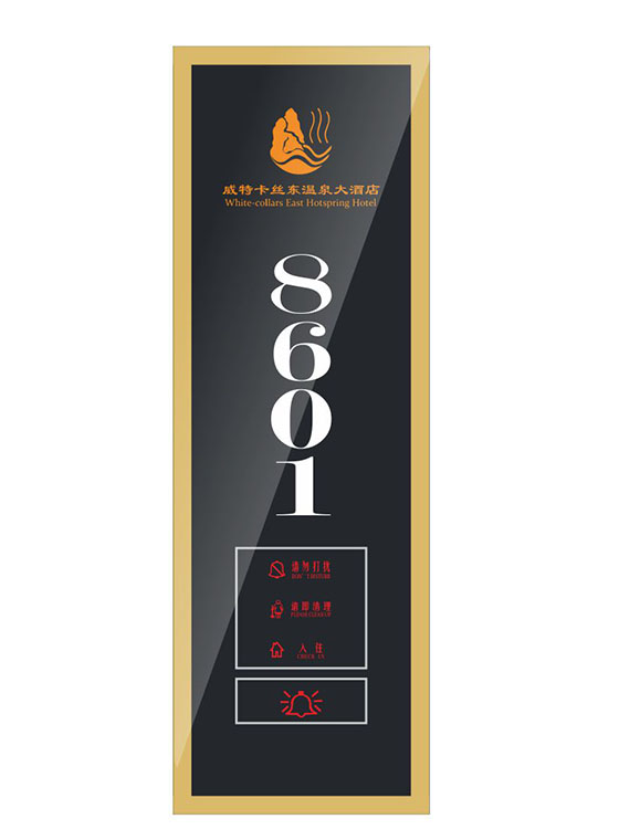 獨(dú)家設(shè)計(jì)“請勿打擾“燈亮?xí)r,按門鈴不響應(yīng),解除客人的煩惱,給客人更多的私人空間,提高服務(wù)質(zhì)量。LED背光觸摸實(shí)現(xiàn)房態(tài)控制,燈位指示一目了然,有利于夜間識別,符合現(xiàn)代潮 流。