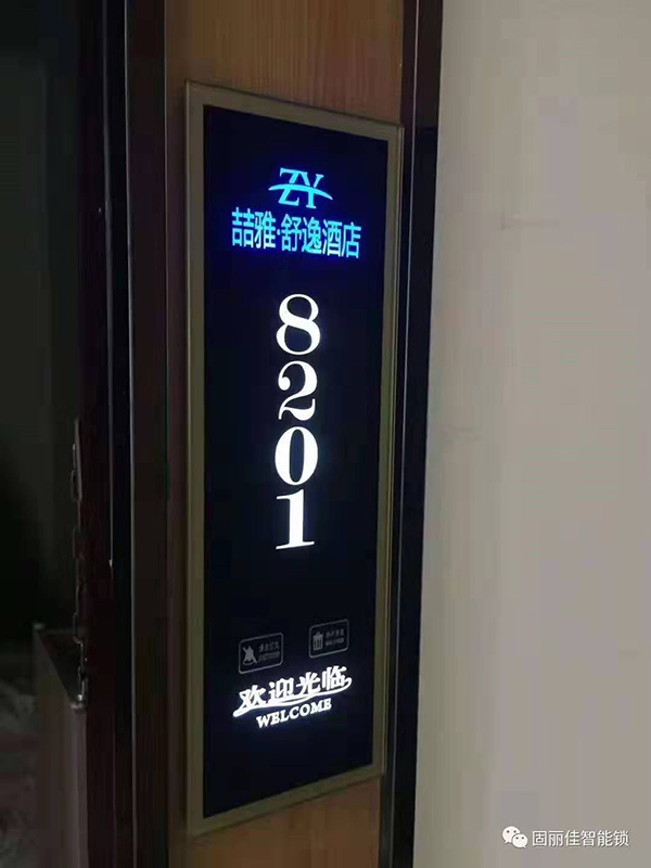 廣州喆雅.舒逸酒店此次與我們固麗科技合作選擇安裝了固麗佳GLJ-9899FH的新款智能酒店門(mén)鎖以及配套的電子門(mén)顯。此款酒店鎖是固麗佳專(zhuān)利產(chǎn)品,外觀(guān)設(shè)計(jì)新穎,采用堅(jiān)實(shí)防暴的鋅合金材質(zhì),同時(shí)刷卡感應(yīng)區(qū)顯示面板可以個(gè)性化定制LED顯示酒店名稱(chēng)和品牌LOGO,彰顯了酒店特色!其豪華的氣質(zhì)更是奢華與尊貴的象征,是各大星級(jí)酒店賓館首選,固麗佳智能酒店鎖卓越的質(zhì)量品質(zhì)與完善的售后服務(wù)更是受到各大酒店青睞的原因之一!